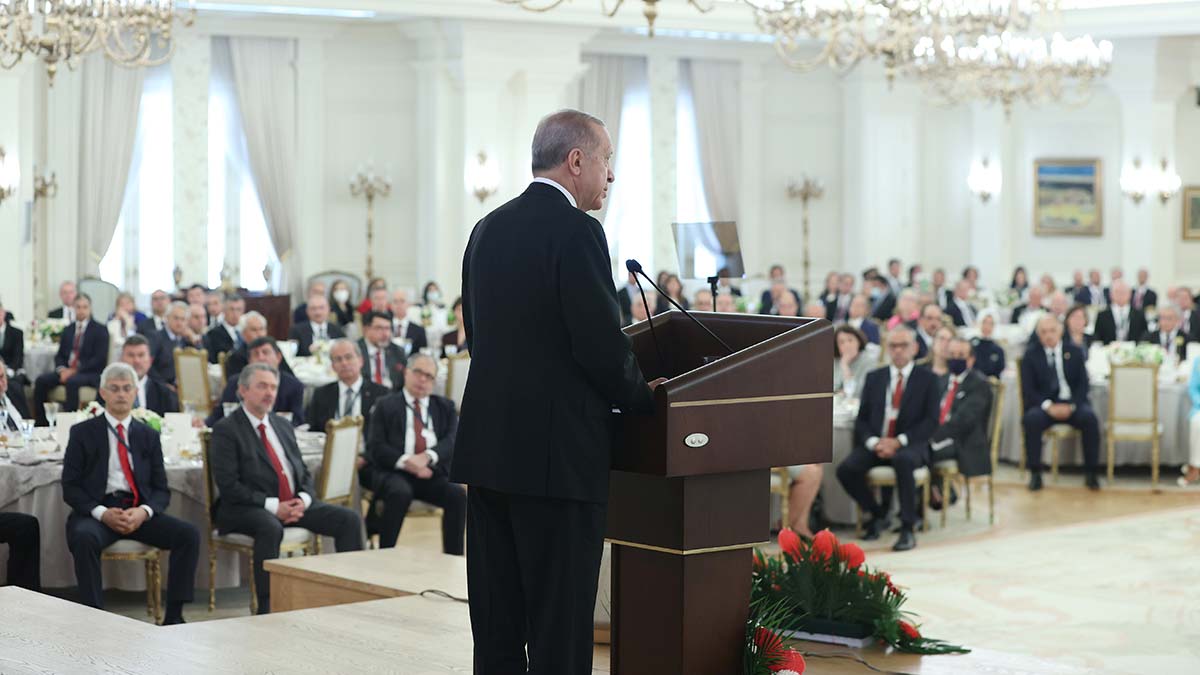 Erdoğan, Rusya ve Ukrayna arasındaki savaşa da değinerek, “Hem Sayın Zelenski ile hem de Sayın Putin ile olan görüşmelerimizde sorunların diyalog yoluyla çözülmesi gerektiğinin altını çizdik. Önce Antalya’da ardından da İstanbul’da yapılan temaslar umutların yeniden yeşermesine sebep olmuştu. Fakat sahada yaşanan müessif gelişmeler dolayısıyla oluşan müspet atmosferi kalıcı ateşkese tahvil etmek ne yazık ki mümkün olmadı.