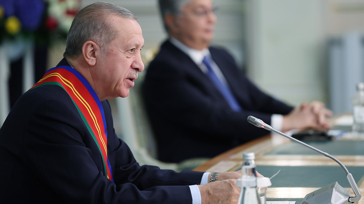 Kazakistan’da bulunan Cumhurbaşkanı Recep Tayyip Erdoğan ile Tokayev ile ortak basın toplantısı düzenledi.