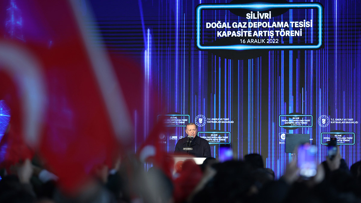 Silivri Yeraltı Doğal Gaz Depolama Tesisi Kapasite Artış Töreni’nde konuşan Cumhurbaşkanı Erdoğan,“Bu açılışla birlikte Silivri Avrupa’daki en büyük gaz depolama tesisi haline gelmiştir. Amacımız ülkemizi en kısa sürede doğalgaz referans fiyatının oluştuğu küresel bir merkez haline dönüştürmektir. Bu konuda değerli dostum Sayın Putin ile önemli görüşmelerimiz oldu. Adımlarımızı attık atıyoruz. Böylece özellikle Trakya doğalgazda, enerjide bir hub haline gelecektir. Bugün Türkiye kendi vatandaşlarına ve sanayisine sunduğu enerji hizmetiyle dünyanın 17’nci büyük arzına sahip ülkesidir. 20 yıla sığdırdığımız asırlık işlere harcadığımız emeklerimizin meyvelerini toplamaya başlayarak ülkemizi en üst lige çıkartacağımız yeni bir döneme giriyoruz” dedi.
