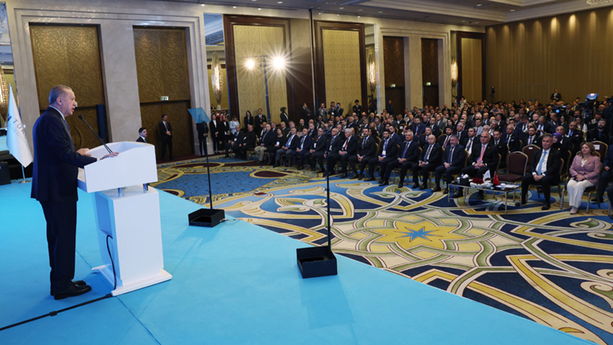 Türkiye’nin bulunduğu coğrafyanın çıkardığı engelleri de görmezden gelmediklerine değinen Erdoğan, “Ülkemizi dört bir yanımızda süren krizlerin, çatışmaların, çekişmelerin dışında tutmak için gerçekten çok çalışıyoruz. Küresel dengeleri, bölgesel hassasiyetleri adeta bir kuyumcu terazisi titizliğiyle ölçüyor, tartıyor, politikalarımızı buna göre belirliyoruz.