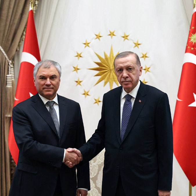 Cumhurbaşkanı Recep Tayyip Erdoğan, Rusya Federasyonu Federal Meclisi Devlet Duması Başkanı Vyacheslav Volodin’i kabul etti.