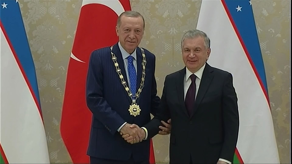 Cumhurbaşkanı Recep Tayyip Erdoğan’a Özbekistan Cumhurbaşkanı Şevket Mirziyoyev tarafından Yüksek Düzeyli İmam Buhari Nişanı taltif edildi.