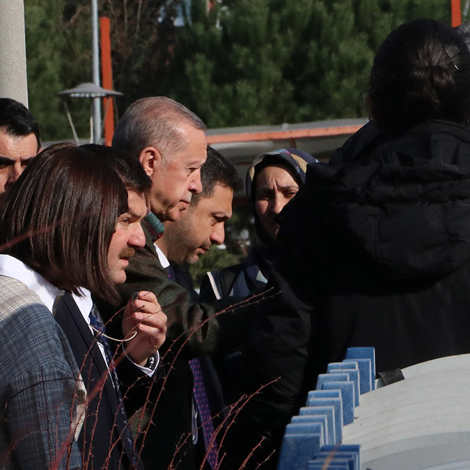 Cumhurbaşkanı Recep Tayyip Erdoğan, beraberindeki MHP Genel Başkanı Devlet Bahçeli, Milli Savunma Bakanı Hulusi Akar, İçişleri Bakanı Süleyman Soylu, Sağlık Bakanı Fahrettin Koca ve Cumhurbaşkanlığı Sözcüsü İbrahim Kalın ile uçakla Adana’ya geldi. Buradan helikopterle Osmaniye’ye giden Erdoğan ve Bahçeli, sırasıyla Saimbey Ortaokulu’nun bahçesine kurulan çadır kent ile Osmaniye Korkut Ata Üniversitesi’nin bahçesindeki çadır kentleri ziyaret edip, depremzedelerle bir araya geldi. Yürütülen çalışmalar hakkında bilgi alan Erdoğan, son duruma ilişkin bir değerlendirme yaptı.