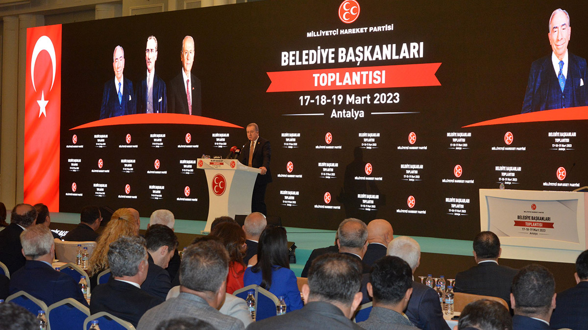 MHP’nin ‘Belediye Başkanları Toplantısı’ Antalya’nın Manavgat ilçesindeki bir otelde başladı. Toplantıya MHP Merkez Yönetim Kurulu (MYK) üyeleri, milletvekilleri, belediye başkanları ve parti yöneticileri katıldı. Toplantının açılışında konuşan MHP Genel Başkan Yardımcısı Sadir Durmaz, 6 Şubat’ta Kahramanmaraş merkezli meydana gelen depremlerin Cumhuriyet tarihinin en çok can kaybına, yıkıma, acıya yol açan depremleri olarak kayıtlara girdiğini belirtti.