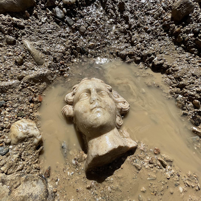 Erkek heykelinin yanı sıra Yunan mitolojisine ait çeşitli heykel başlarına da ulaşıldığını belirten Prof. Dr. Coşkun, “Bunların içerisinde öne çıkan eserlerin başında yaklaşık 40 santimetre yüksekliğindeki bir ‘Dionysos’ başı. Bunun çok benzer örneğini bir sezon önce bulmuştuk. Bu sezon bir de ‘Herakles’ başı bulduk. 2020 yılında ‘Herakles’ gövdesi bulmuştuk.