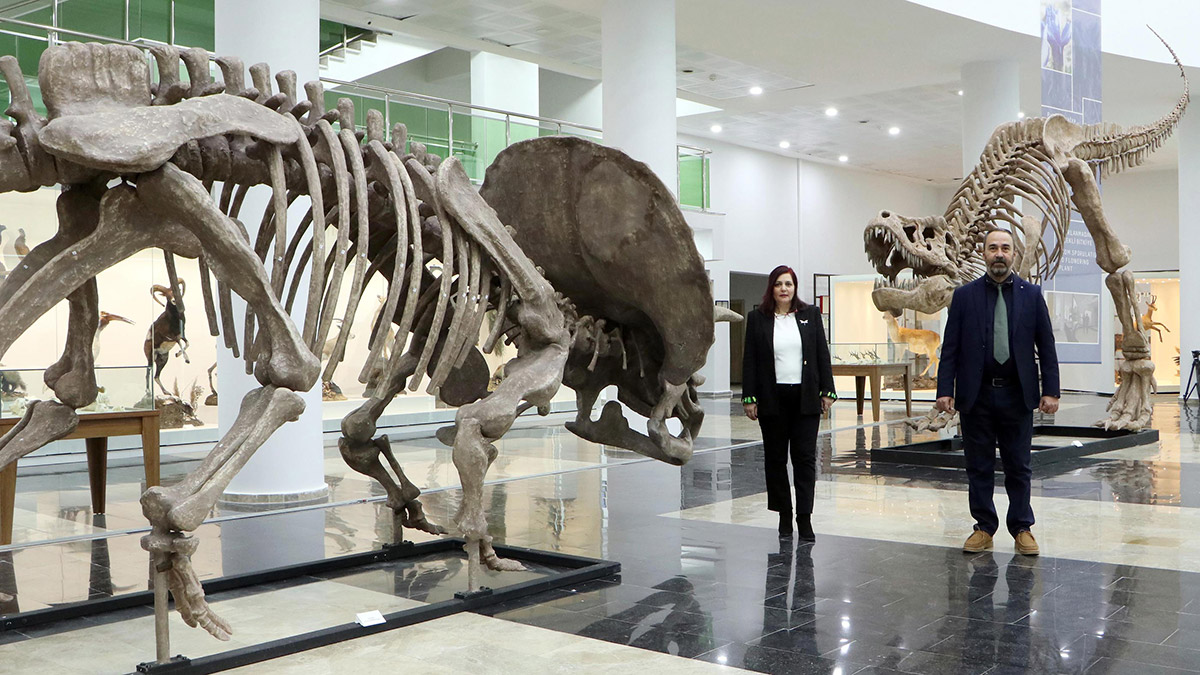 Dinozor replika iskelet koleksiyonlarının da müzede yer almasıyla ilgili bilgi veren Gültekin, “Bu hayvanlar Anadolu coğrafyasında yaşamamış dolayısıyla başka kıtalara ait örnekler, bunlar majör hayvanlar. 65 milyon yıl önce nesilleri tükenmiş. 1 milimetrenin 4’te 1’inden küçük canlılar da var koleksiyonumuzda.
