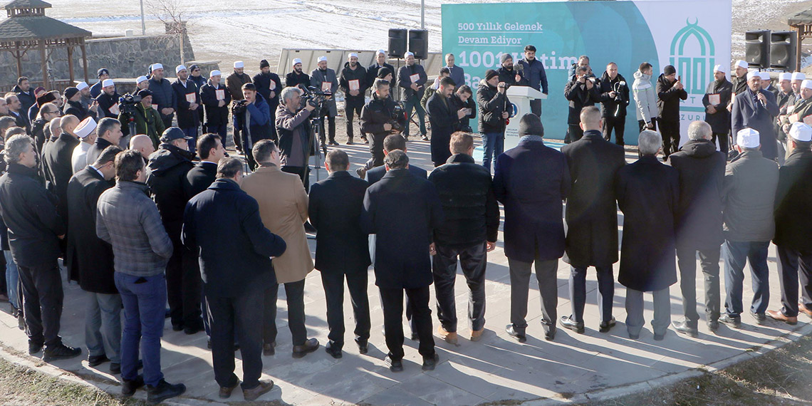 Erzurum’da 490’ıncı kez düzenlenen ‘Binbir Hatim’ geleneğiyle merkez ilçeler Aziziye, Palandöken ve Yakutiye’deki camilerde Kur’an okunacak. ‘Binbir Hatim’ geleneği, 13 Ocak’ta Ulu Cami’de erkeklere, 14 Ocak’ta ise aynı camide kadınlara okunacak hatim duasıyla sona erecek.