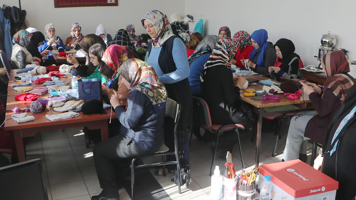 Erzurum’daki Palandöken İnovasyon Kadın Girişimciler ve İşletme Kooperatifi’nde çalışan kadınlar, depremzedelerin üşümemesi için 50 kişilik ‘örgü timi’ oluşturdu. Kadınlar, gün boyu el emeği, göz nuru dökerek ilmek ilmek işledikleri atkı, bere, içlik, eldiven ve patik gibi ürünleri yardım TIR’ları ile afet bölgesine gönderiyor.