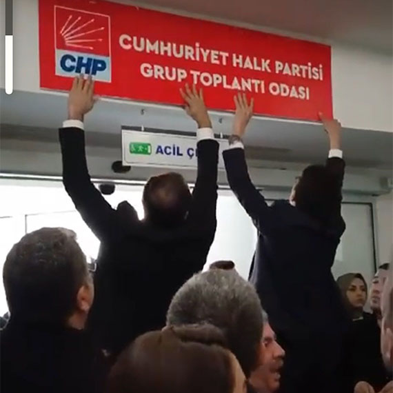 Esenyurt Belediyesi’nde CHP tabelası indirildi, CHP’li meclis üyelerinin kullandığı grup toplantı odası kilitlendi.