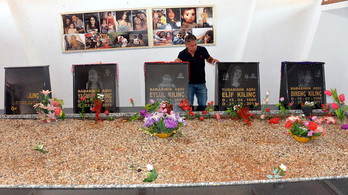 İngiltere’de kafe işleten Turabi Kılınç (42), 11 yıl önce Tekirdağ’daki trafik kazasında kaybettiği eşi ve 3 çocuğunun mezarlarını müzeye çevirdi.