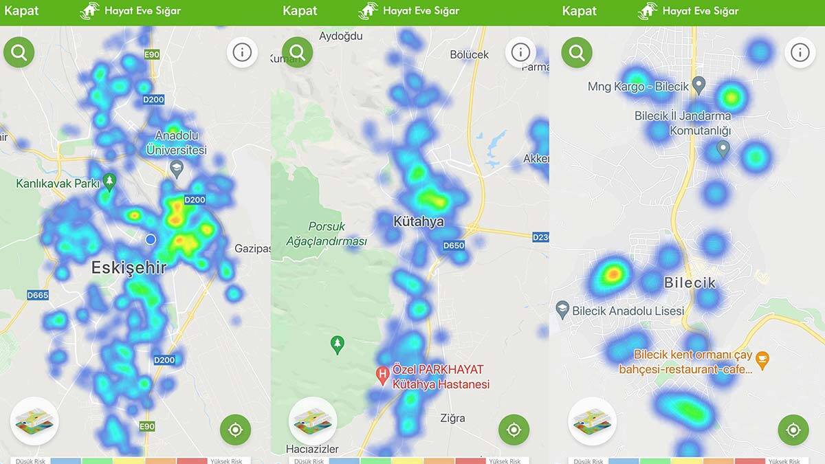Öte yandan Eskişehir, Bilecik ve Kütahya’da düşen vaka sayıları, güncellenen Hayat Eve Sığar (HES) uygulamasındaki risk haritasına da yansıdı. Haritada kırmızı alanlar, mavi ve yeşile döndü.