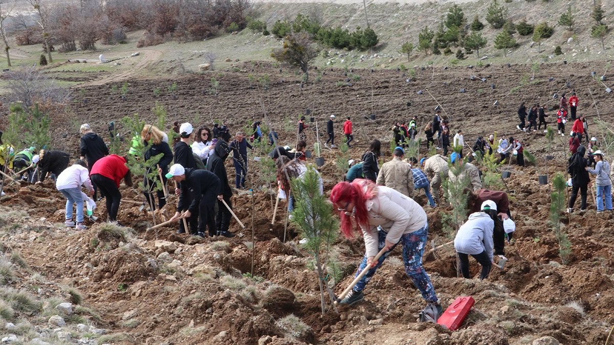Saygı duruşu ve İstiklal Marşı’nın okunmasının ardından yapılan dualardan sonra 10 dekarlık alanda karaçam, sedir ve yapraklı türlerden 1000 fidan toprakla buluşturularak ‘6 Şubat Deprem Şehitleri Ormanı’ oluşturuldu.