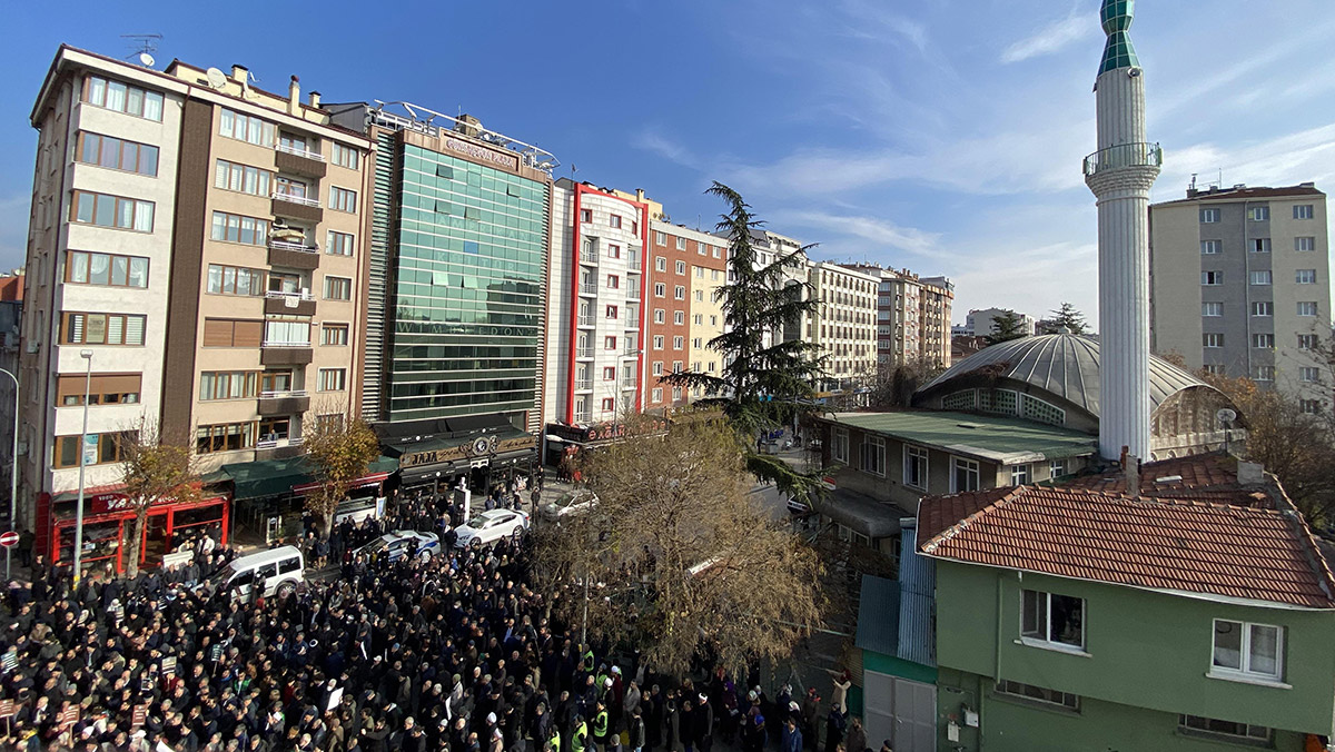 Eskişehir’in Tepebaşı ilçesinde yol, konut ve ticaret sahasında kaldığı gerekçesiyle yıkılması gündeme gelen 1965 tarihli Hal Camii’nin önünde toplanan kalabalık grup, durumu protesto etti.