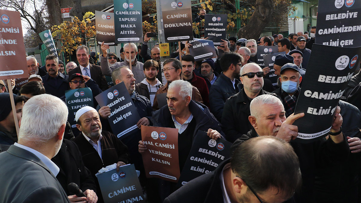 Tepebaşı ilçesine bağlı Eskibağlar Mahallesi Üniversite Bulvarı’nda, 1965 yılında inşa edilen Hal Camii’nin yıkımı gündeme geldi. Büyükşehir Belediye Meclisi’nde, caminin 1998, 2000 ve 2004 tarihli 1/1000 ölçekli imar planında yol ve konut sahasında kaldığı, 2022 yılı 1/5000 ölçekli revizyon imar planında ise yol, ticaret, konut ve turizm alanına isabet ettiği belirtilerek yenisinin yapılarak mevcut Hal Camii’nin yıkılması görüşüldü. Başka bir bölgede yapılacak yeni caminin ardından Hal Camii’nin yıkılması planı, Eskişehir Kardeşlik Platformu üyelerince protesto edildi. Cami önünde ellerinde ‘Camilerin tapusu halka aittir’, ‘Hal Camii yerinde kalsın’, ‘Camime dokunma’ yazılı dövizler taşıyan yaklaşık 800 kişi, plana tepki gösterdi.