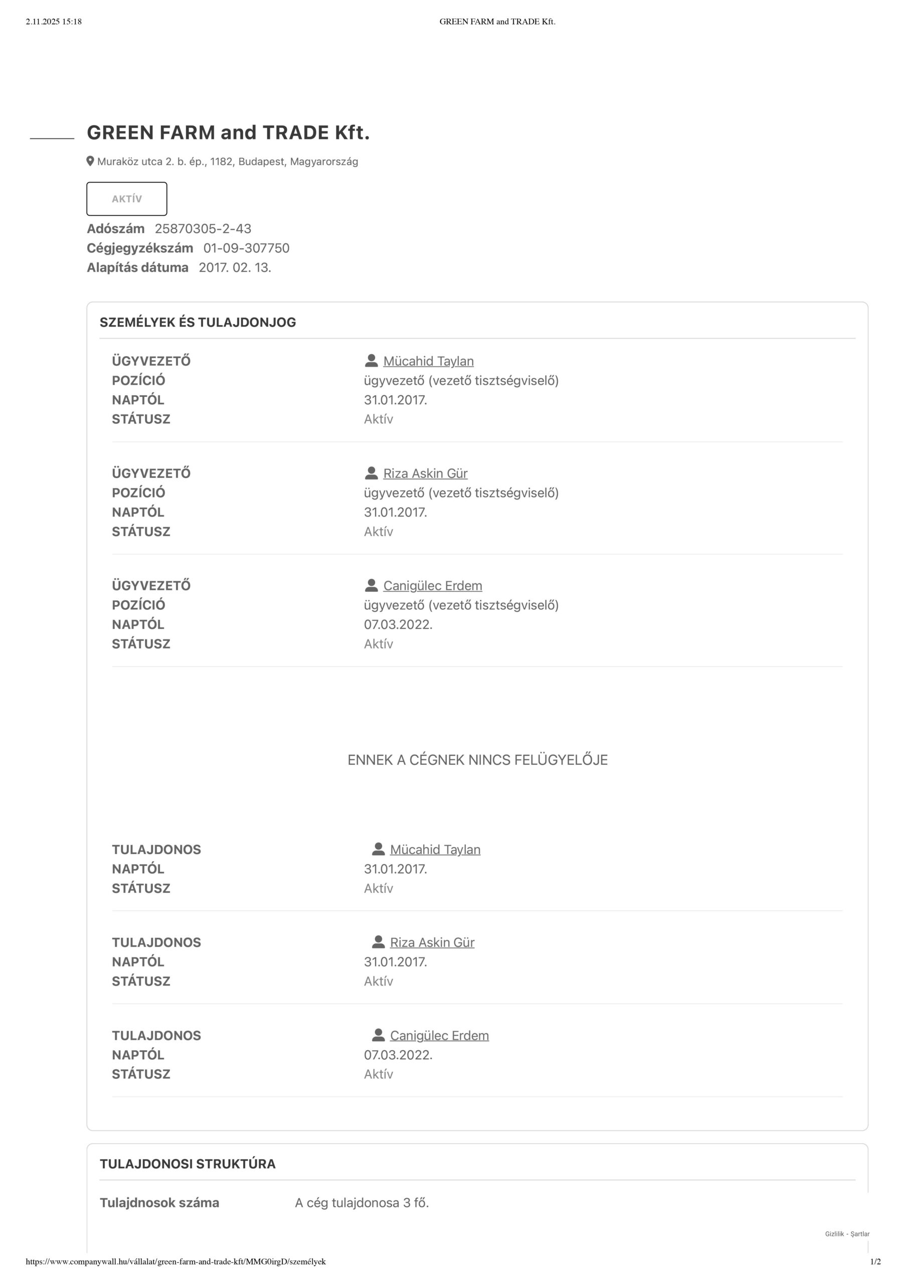 “Elimizdeki belgeler, Et ve Süt Kurumu Genel Müdürü Mücahid Taylan’ın, Macaristan’ın başkenti Budapeşte’de faaliyet gösteren Green Farm and Trade Kft. adlı şirketin hem ortağı hem de yöneticisi olduğunu ortaya koyuyor.