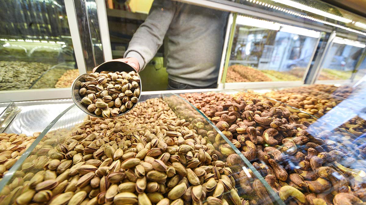 “Muz 7 lira, portakal 3 lira, mandalina 4 lira, elma 4 lira, armut 6 lira, hurma 10 lira, üzüm 13 lira, nar 15 lira, kivi 15 lira, Antep fıstığı 170 lira, badem 190 lira, fıstık 45 lira, kabak çekirdeği 80 lira, kaju 220 lira, çekirdek 45 lira, leblebi 45 lira”
