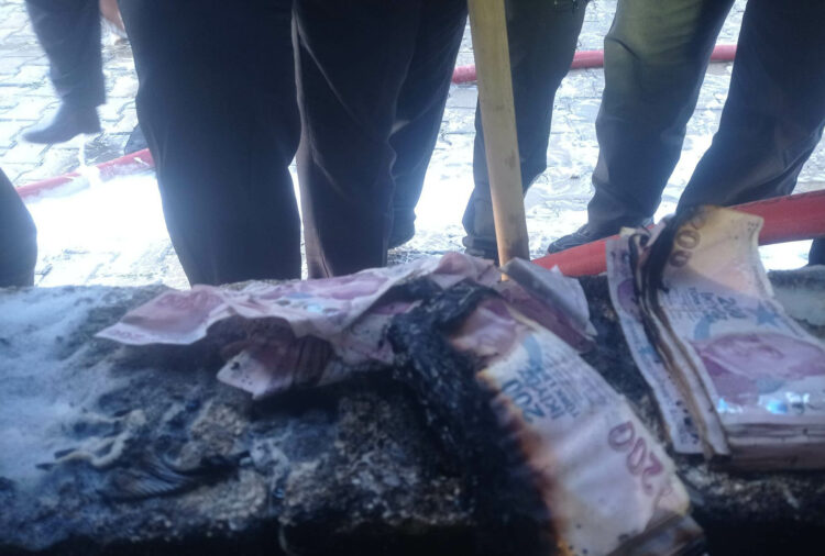 Onikişubat ilçesinin Hasancıklı Mahallesi’nde dün akşam saatlerinde Osman Ceyhan’a ait 2 katlı evde yangın çıktı. İhbar üzerine adrese çok sayıda itfaiye ekibi sevk edildi. Ekipler alevleri kısa sürede söndürdü. Yapılan incelemede yanmış eşyaların arasında jandarma ekipleri tarafından muhafaza altına alınan pakette sarılı 320 bin 600 TL paranın 183 bin 100 TL'sinin yandığı belirlendi.