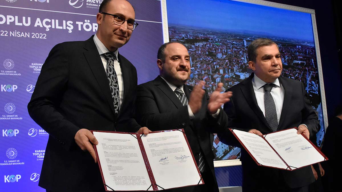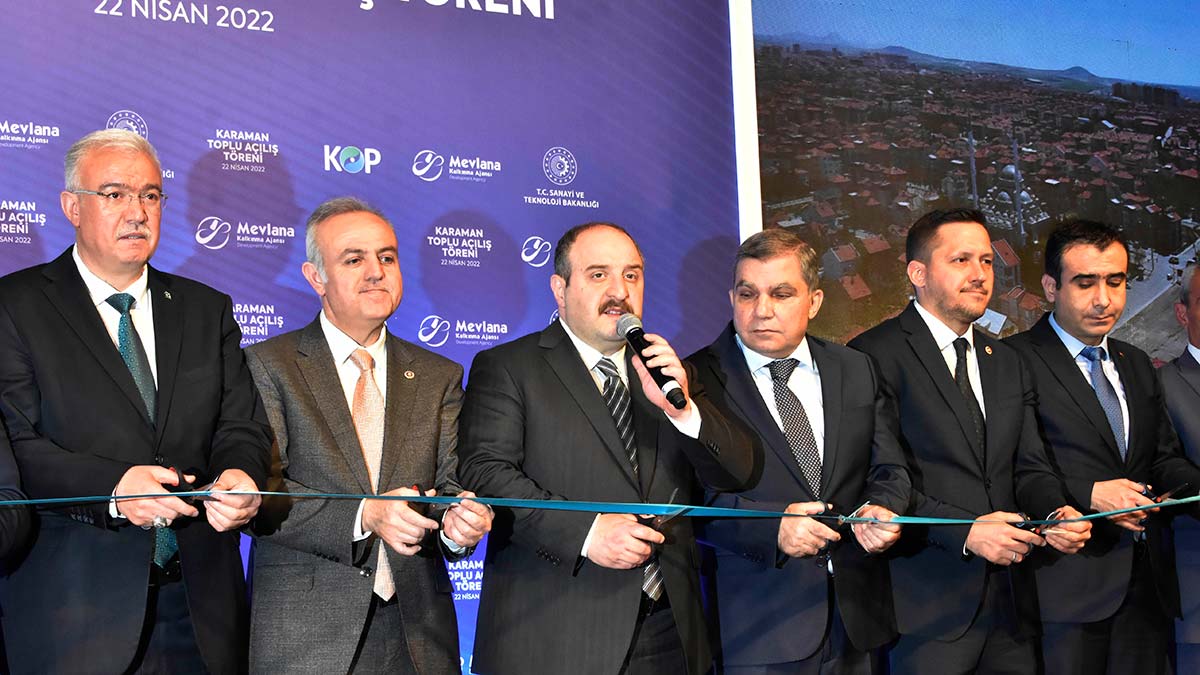 ”Tabii Karaman aslında tarımdaki güçlü varlığıyla biliniyor ve buna dayalı tarımsal sanayisiyle biliniyor. Ama buradaki makina imalatçıları, farklı sektörlerde çalışan firmalarımız da tabii ki hem bizim gururumuz olmaya hem Türkiye’nin gururu olmaya devam ediyor. İşte bugün burada Karaman’da bir firmamızın ürettiği yüksek hızlı şarj, elektrikli araç şarj istasyonunun önünde duruyoruz. Geçtiğimiz günlerde Yozgat’a gitmiştik. Orada balistik sektöründeki değerli bir firmayı gezmiştik.