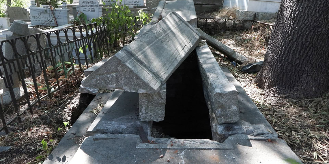 İstanbul’un tarihi mezarlıklarından Eyüpsultan Mezarlığı, yine definecilerin hedefi olduğu öne sürüldü. Servet-i Fünun dönemi yazarlarından Ahmet Şuayib’in demir parmaklıklarla çevrili kabri, paramparça edildi. Tarih araştırmacısı Hüseyin Kala, “Kesinlikle tarihi mezarlıklara tepeden izlenebilen kameralar konup, ekipler tarafından devamlı izlenmesi gerekli” dedi.