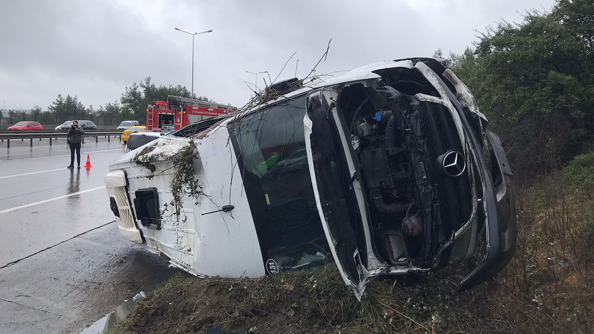 Kaza, Hasdal Kemerburgaz Yolu İstanbul Havalimanı istikametinde saat 10.00 sıralarında meydana geldi. Şoför Bayram Sarıkaya, 9 turist yolcu ile Kemerburgaz yolunda ilerlerken direksiyon hakimiyetini kaybetti. Yol kenarına devrilen minibüsteki yolcular ve sürücü yaralandı.