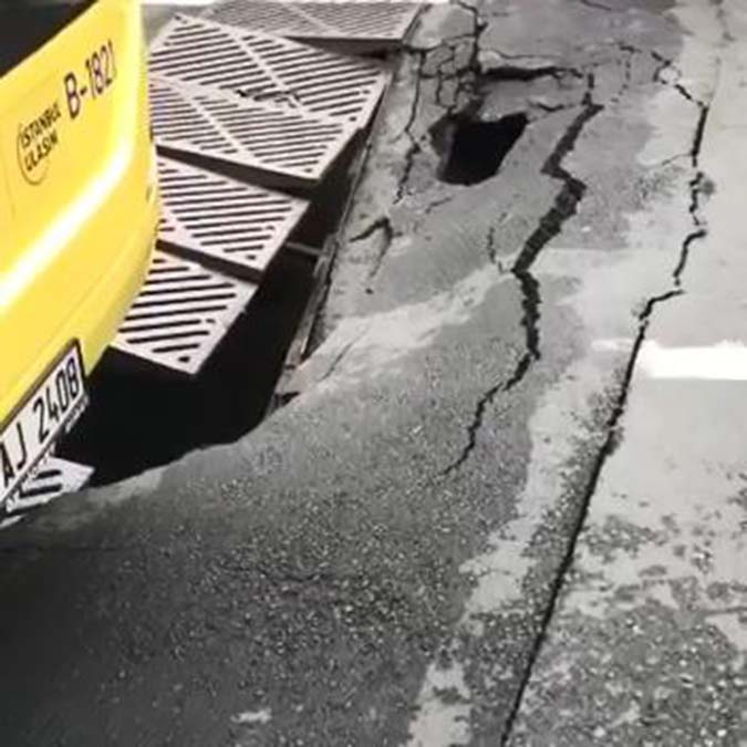 “İETT OTOBÜSÜ GEÇERKEN YOL ÇÖKTÜ ZOR KURTARDILAR”