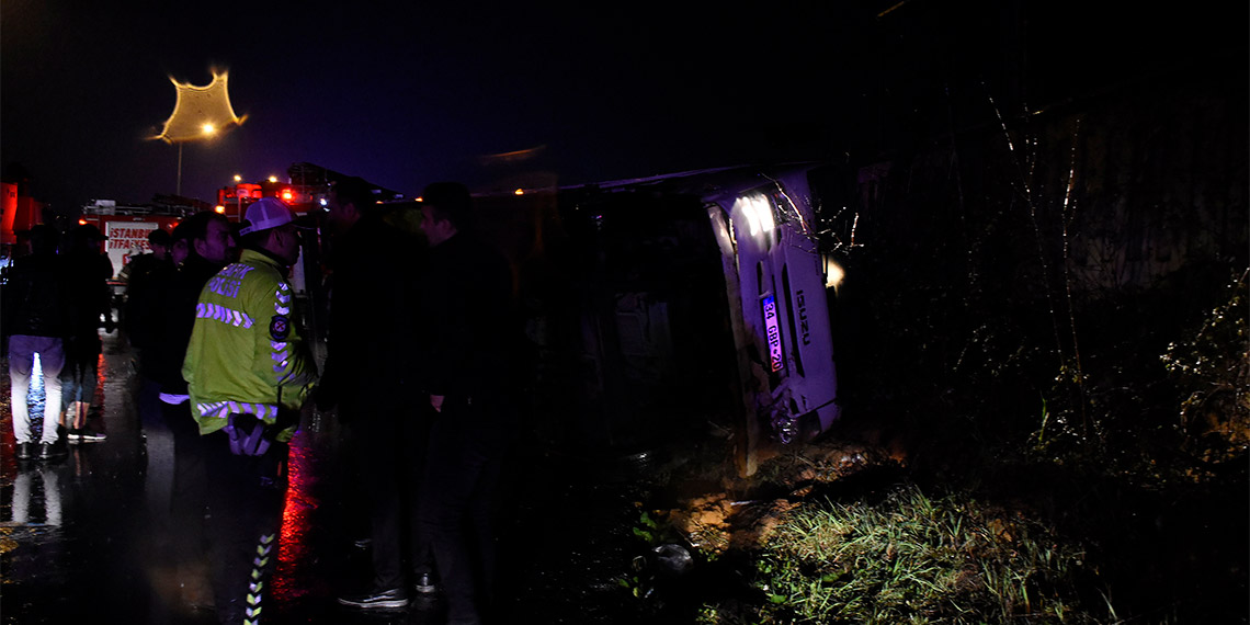 Kaza, Hasdal-Kemerburgaz Yolu Hasdal Mevki, İstanbul Havalimanı istikametinde saat 20.15 sıralarında meydana geldi. Edinilen bilgiye göre, Yakup Tonbul(64)’un kullandığı tekstil ürünleri yüklü 34 GBP 20 plakalı kamyon şoförünün, kayganlaşan yolda direksiyon hakimiyetini kaybetmesi nedeniyle kontrolden çıkarak devrildi.