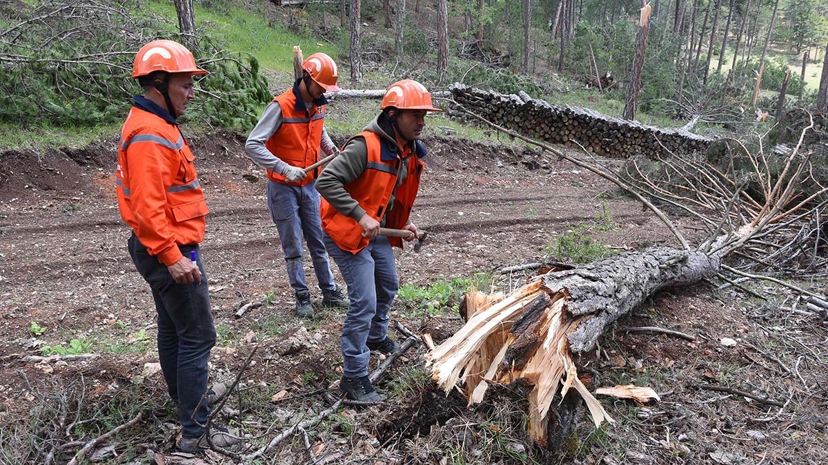 Geyik Alanı Orman İşletme Şefi Timuçin Özdemir ise hasar tespit çalışmalarının ardından rehabilitasyona başlayacaklarını aktardı. Özdemir, “Büyük bir afet olduğu ortada. Gerekli ölçümlerimizi yaptık, 600’ün üzerinde çam ağacı zarar görmüş ve ölçümlerimize devam ediyoruz. Yaklaşık 2 hektarlık bir alanda kırık ve devrikler meydana gelmiş. Bu kırık ve devrik ağaçları kaldırdıktan sonra, toprak işlemelerini yapıp sahamızı rehabilitasyona hazır hale getireceğiz.