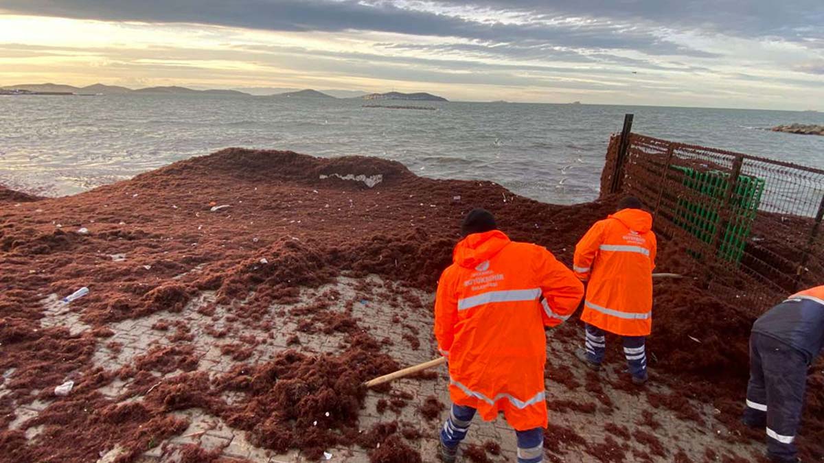 Sahilde spor yapan kişi de,”Marmara Denizi kusuyor diye düşünüyorum. Sonuçta bunlar da bir canlıydı. Ölmüşler ve denizin dibine çökmüşler. Bu haliyle birlikte sahil kısımlarında birikiyor. Sahil boyunca çok kırmızı yosun var ama bu bölgede daha çok gözüküyor” diye konuştu.
