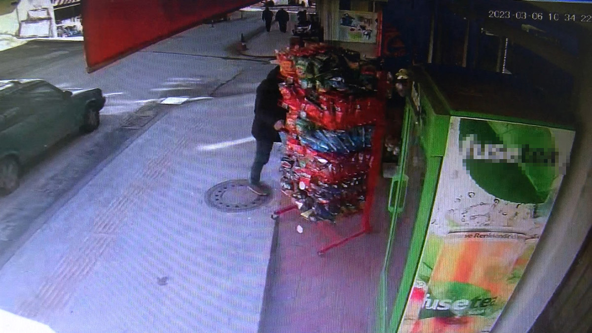Ordu’nun Altınordu ilçesinde market sahibinin, fırtınada sürüklenen cips standını yakalamak için peşinden koştuğu anlar, güvenlik kamerasına yansıdı.