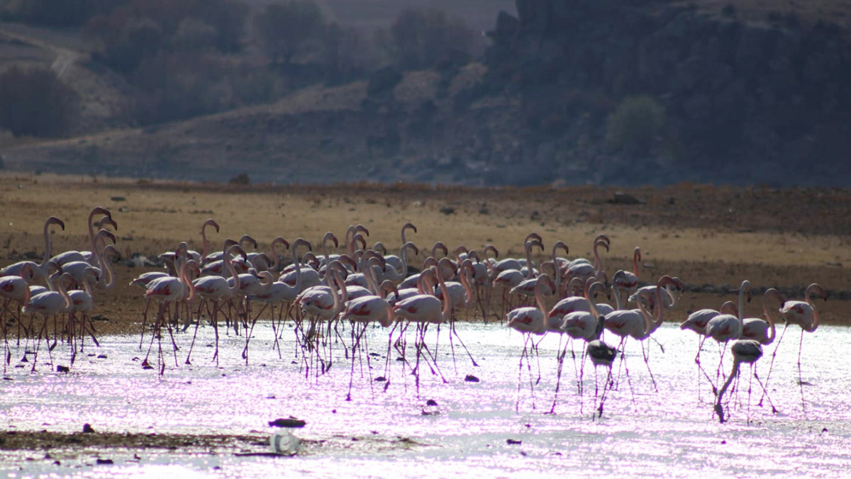 Türkiye’nin 2’nci büyük gölü olan Tuz Gölü’nde, kuraklık nedeniyle suların azalmasıyla göçe hazırlanan flamingolar Mamasın Barajı’nı mesken tuttu.