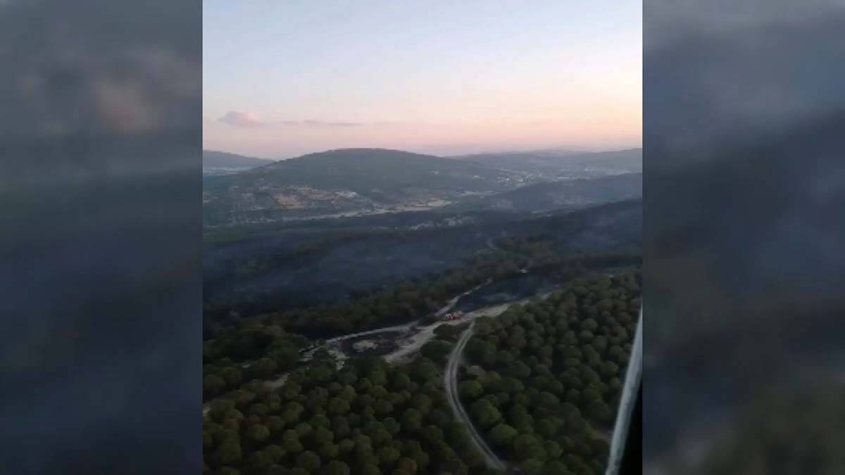 İzmir Foça’daki yangında çam ağaçlarıyla kaplı ormanlık alan kontrol altına alındı