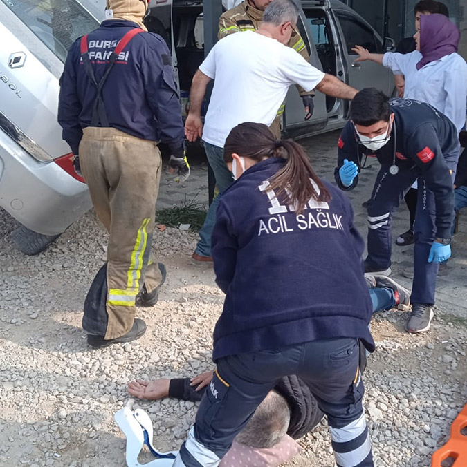 İhbarla kaza yerine gelen sağlık görevlilerince ambulanslarla Bursa Uludağ Üniversitesi Hastanesi’ne kaldırılan 2 yaralı, tedaviye alındı. Kaza anı, güvenlik kamerasına anbean yansırken, Fehmi Okcu gözaltına alındı. Polisteki ifadesinin ardından Okcu, serbest kaldı.