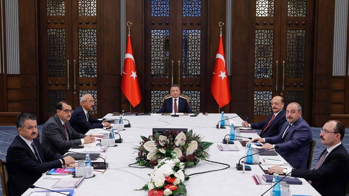 Ekonomi Koordinasyon Kurulu 2021 yılı 1’inci toplantısı, Cumhurbaşkanı Yardımcısı Fuat Oktay‘ın başkanlığında Cumhurbaşkanlığı Külliyesi’nde gerçekleştiriliyor. Toplantının açılışında konuşan Oktay, Cumhurbaşkanı Recep Tayyip Erdoğan’ın vizyon ve liderliğinde oluşturulan ekonomi politikalarında kurumlar arası sıkı eşgüdümün, daha güçlü ve salgın dahil her türlü gelişmelere karşı daha dirençli bir ekonomi için olmazsa olmaz olduğunu söyledi.