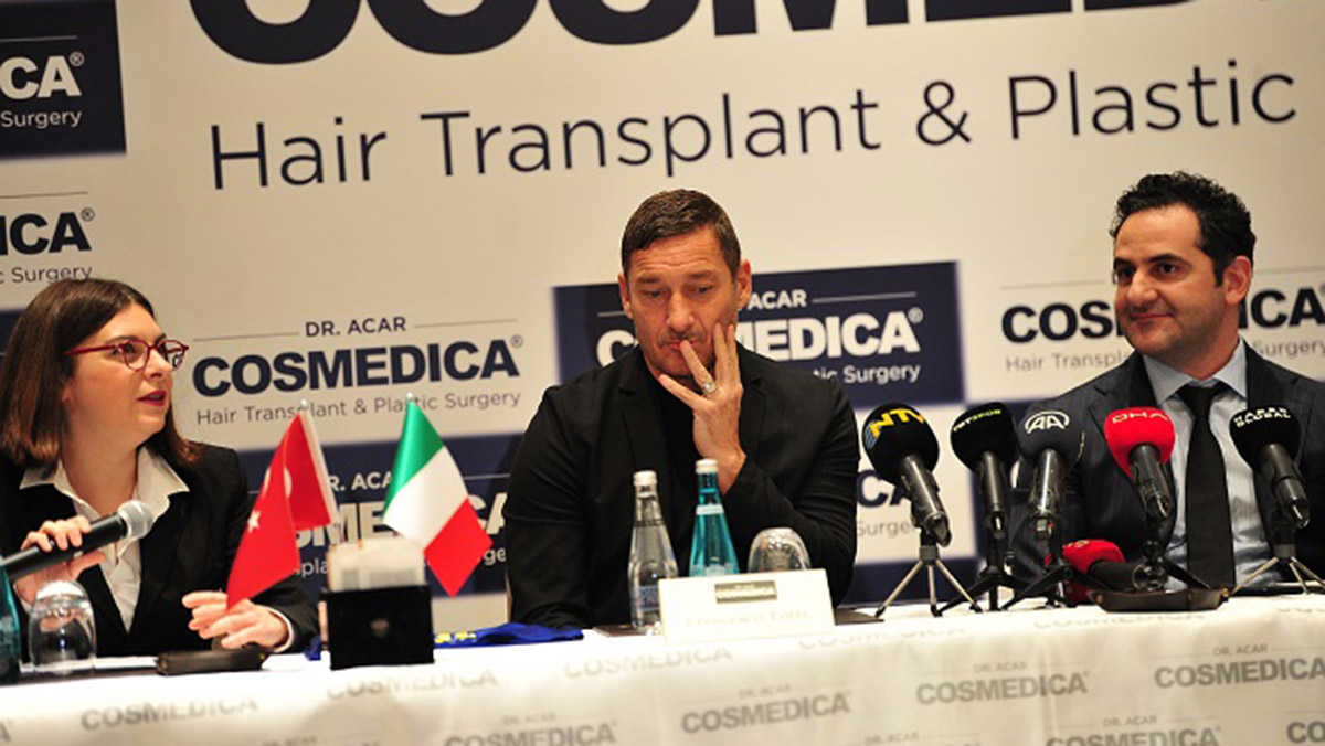İtalyan Futbolcu Francesco Totti ile İstanbul merkezli saç ekim kliniği Cosmedica’nın kurucusu Dr. Levent Acar bugün düzenlenen basın toplantısı ile ortaklıklarını duyurdu.