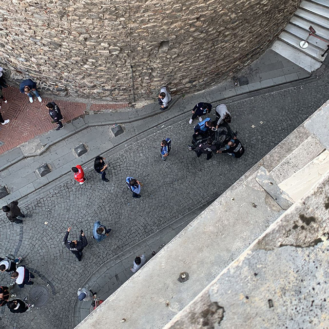 Polis ekipleri çevrede güvenlik önlemi alarak, kulenin etrafını şeritle kapattı. Üzerinde kimliğini belirleyebilecek herhangi bir belge çıkmayan ceset, olay yeri inceleme ekiplerinin çalışmasının ardından Adli Tıp Kurumu Morguna kaldırıldı. Bazı yerli ve yabancı turistler polisin çalışmalarını izlerken bazıları da cep telefonlarıyla görüntü almaya çalıştı