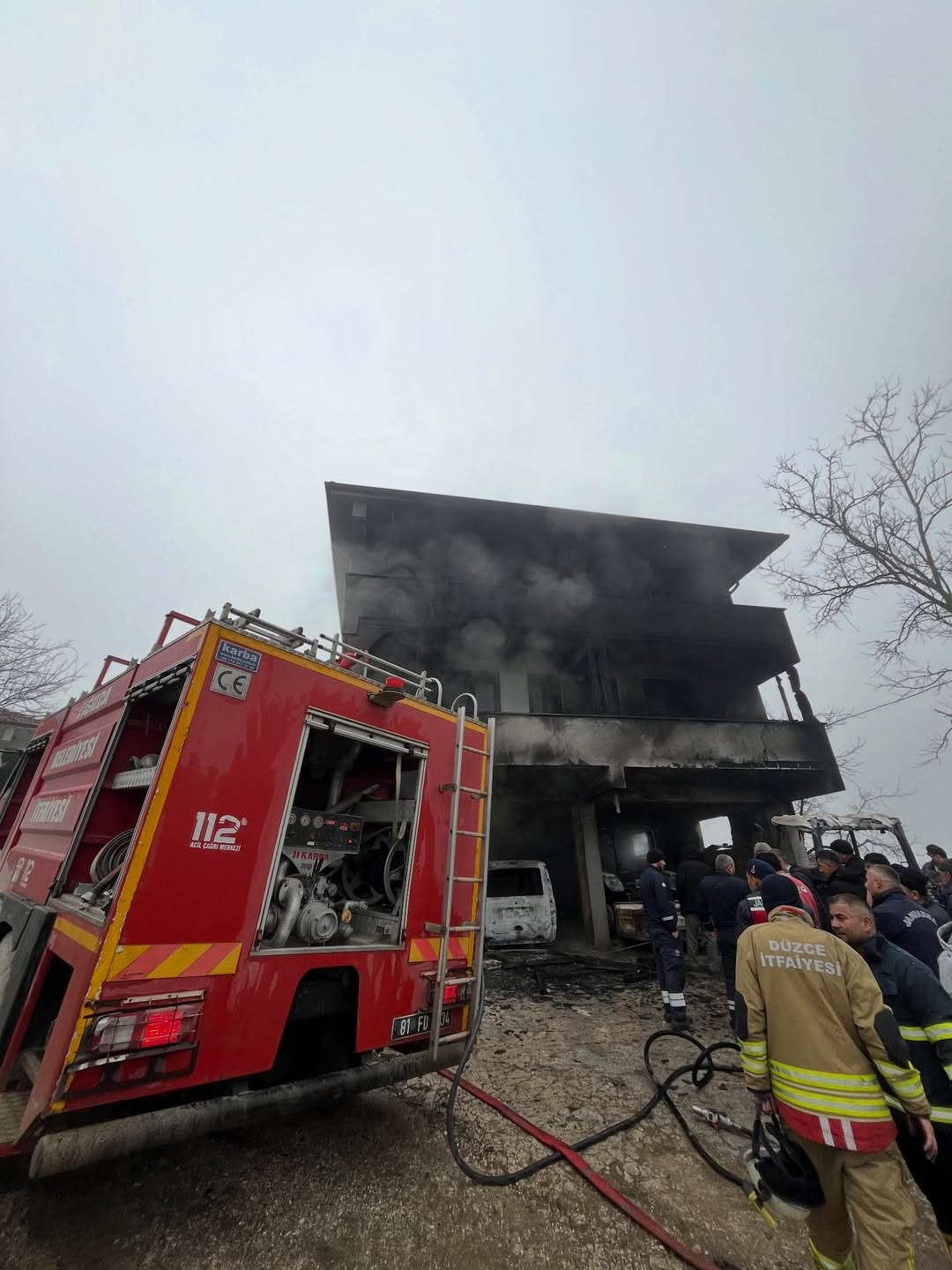Yangın, saat 13.00 sıralarında Yığılca'ya bağlı Akçaöğren köyü İsmailçayırı Mahallesi’nde 3 katlı binanın garajında çıktı. Behçet Aydın'a ait 3 katlı binanın garaj olarak kullanılan giriş katından alevlerin yükseldiğini görenler durumu itfaiyeye bildirdi. Adrese sevk edilen itfaiye ekibi, giriş katını saran alevlere tazyikli suyla müdahale etti. 1 saat süren çalışmanın ardından yangın, üst kata sıçramadan söndürüldü.