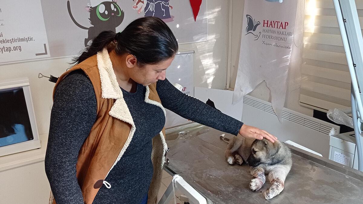 Operasyonu gerçekleştiren Veteriner Hekim Ali Laçinbala ise 4 aylık olduğu tahmin edilen yaralı köpeğin çekilen röntgen filminde patilerinde kırık tespit edildiğini belirterek, “Bölgede 12 santimlik açık yara vardı. 17 dikişle deri bütünlüğünü sağladık. Açık yara tedavisi bitiminden sonra kırık kemikler için atel tedavisi düşünüyoruz. Pire gözlemlediğimiz köpeğe tedavinin yanında paraziter ilaçlama da yaparak geçici yuvasına teslim ettik” diye konuştu.