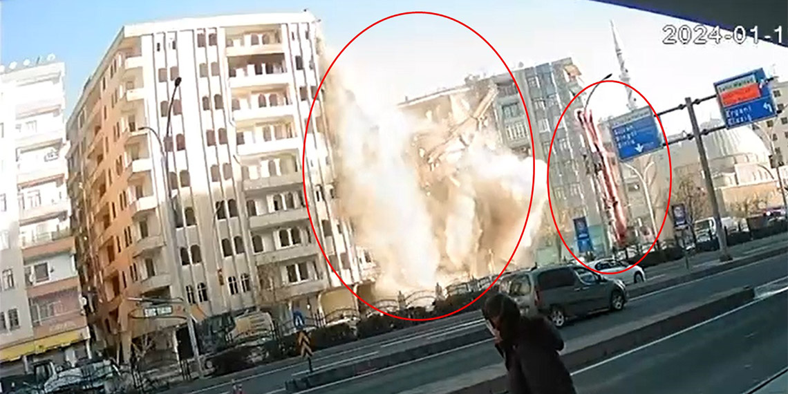 Kahramanmaraş merkezli 6 Şubat’taki depremlerde ağır hasar aldığı için tahliye edilen Kayapınar ilçesi Huzurevleri Mahallesi’ndeki 2 bloklu 8 katlı Tunç Apartmanı’nın kontrollü yıkımı için çalışma başlatıldı. A Blok’un orta kısım kısımlarındaki duvarların yıkılmasının ardından kalan kısımların da yıkılması için paletli ekskavatör operatörü, binaya yaklaştı. Bu sırada bina çöktü, çevreyi toz bulutu kapladı. Daha sonra B Blok’un yıkımına başlandı, bu sırada yine bina çöktü. Çökme anları güvenlik kamerasına yansırken, enkaz kaldırma çalışmaları sürüyor.