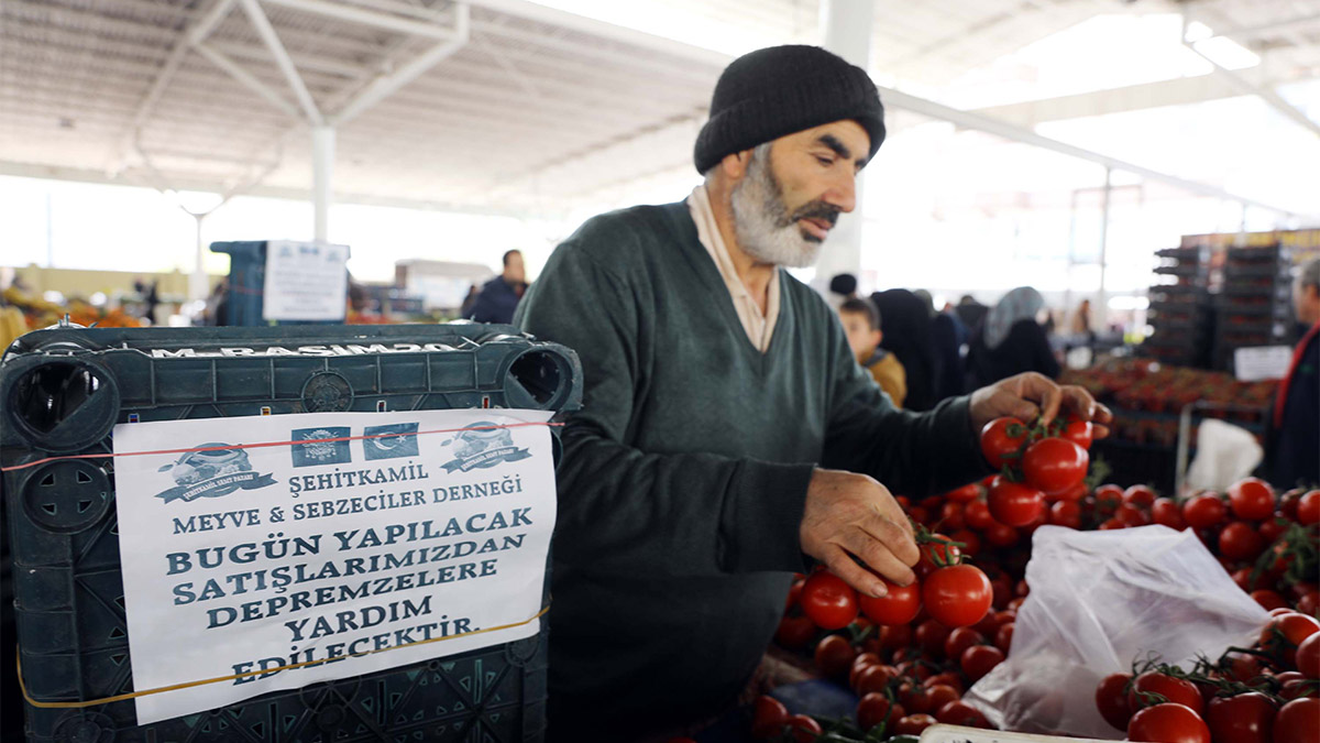 Kahramanmaraş merkezli, 6 Şubat’ta meydana gelen 7.7 ve 7.6 büyüklüğündeki depremlerin ardından Gaziantep’te, Meyve ve Sebzeciler Dayanışma Derneği üyesi pazarcılar, depremzedelere destek olmak için 1 günlük gelirlerini bağışlama kararı aldı. Pazarcılar, bastırılan el ilanlarını sebze kasalarına yapıştırıp halkın da bilgi sahibi olmasını sağladı. Bir gün boyunca yapılan satışların ardından 250 pazarcı, biner lira bağış yapıp 250 bin lira topladı.