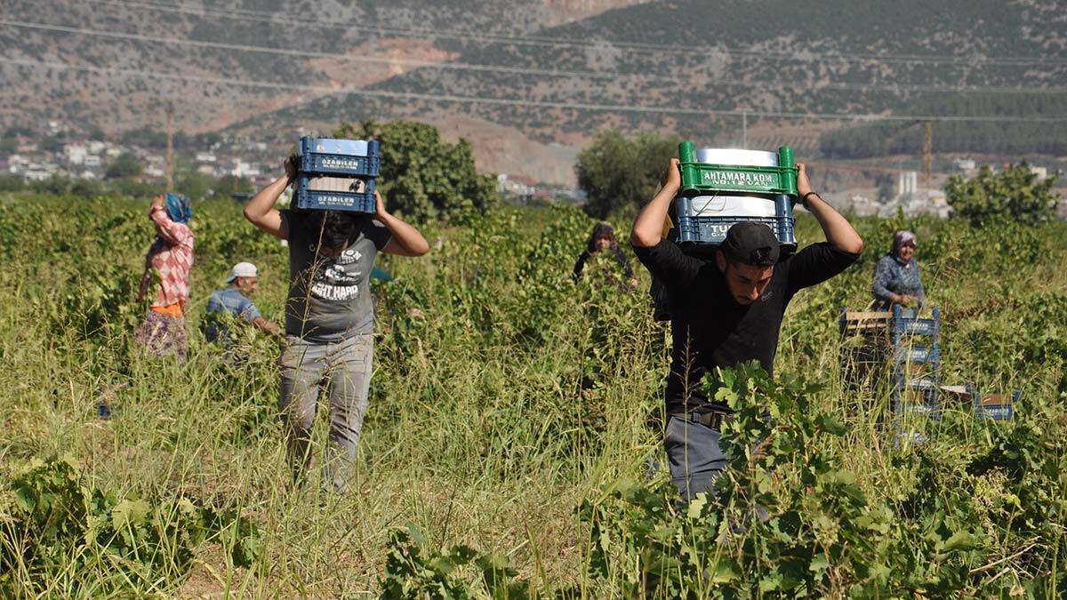 Hasat mevsiminin başlaması ile yüzlerce tarım işçisi, sabah 05.00’te üzüm bağlarına gidiyor. Sıcak hava nedeniyle işçilerin şafak vakti başlayan üzüm toplama mesaisi 5 saat boyunca devam ediyor. İşçiler, bağlardan kestikleri üzümleri kasalara doldurup, ardından kamyonlara yükleyerek hale gönderiyor.