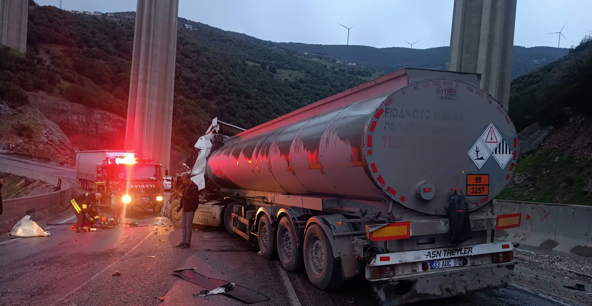 Kaza, sabahın erken saatlerde Nurdağı ilçesi yakınlarında meydana geldi. Beşir Onar'ın kullandığı 33 Auc 910 plakalı tanker, karşı yönde gelen R.T.'nin kullandığı 73 Se 116 plakalı tanker ile kafa kafaya çarpıştı. Çevredekilerin 112 Acil Çağrı Merkezi’ne bilgi vermesi üzerine kaza yerine polis, itfaiye ve sağlık ekipleri sevk edildi. İtfaiye ekipleri sürücüleri sıkıştıkları yerden çıkardı.