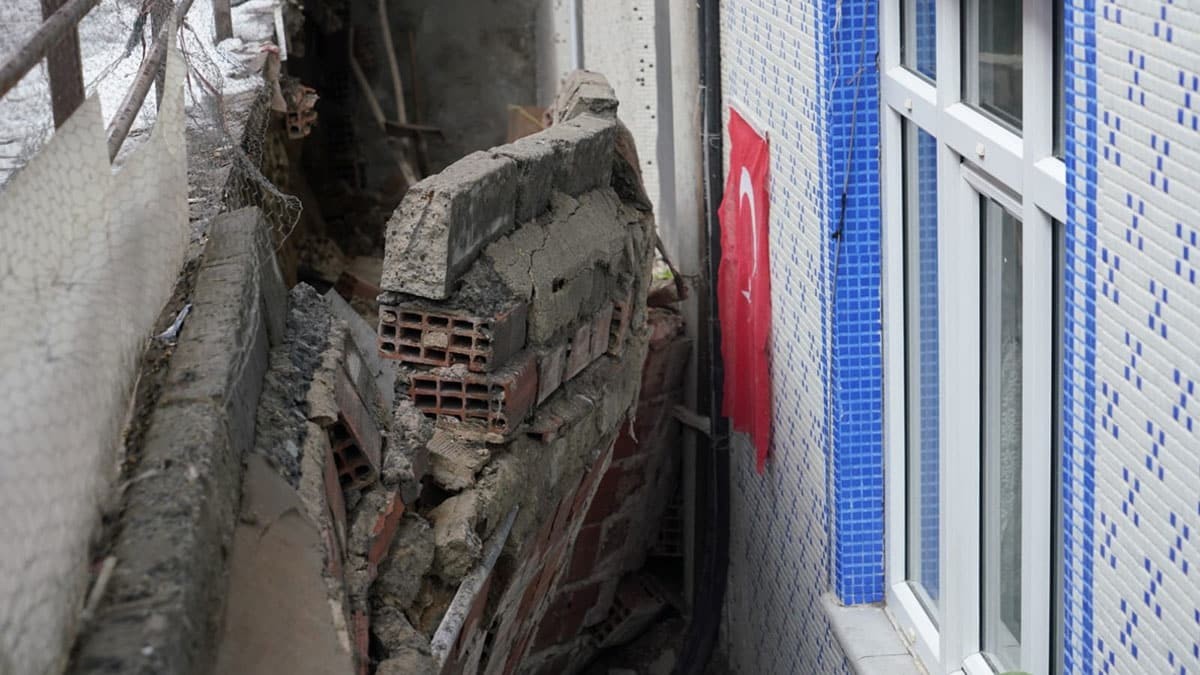 Gaziosmanpaşa’da kaldırım kenarında bulunan istinat duvarı 5 katlı binanın bodrum katındaki daireye doğru çöktü.