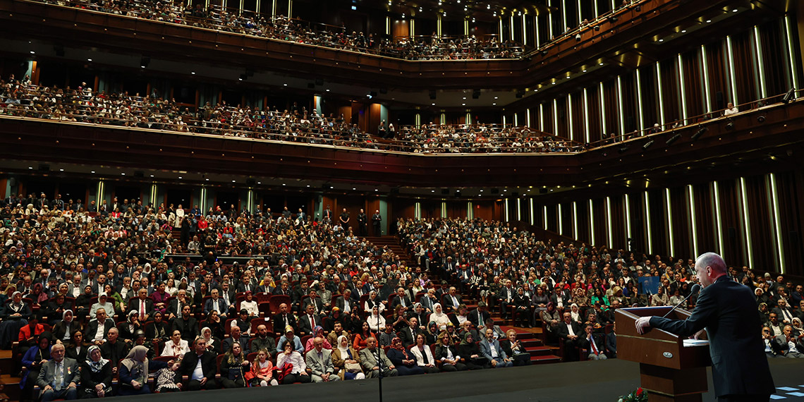 Erdoğan, evlenme yaşının sürekli yükseldiğini, boşanma oranlarının da her geçen yıl daha da arttığına dikkat çekerek, “Ortalama çocuk sayısı ise günden güne düşüyor. Yani boşuna ‘en az 3 çocuk’ demiyoruz. Çünkü bu toplumun özellikle ihtiyacı var. Detayına burada giremem. Ama bizim şu anda Türkiye olarak nüfusumuzun 85 milyon olması yeterli değil. Çok daha fazla bir nüfusa ihtiyacımız var. Avrupa ülkeleri başta olmak üzere dünyamız giderek yaşlanıyor. Aile gibi güvenli bir sığınağa sahip olmayan toplumlarda intihar oranları, bağımlılık, uyuşturucu kullanımı ve diğer sorunlar almış başını gidiyor. Öte yandan aile kurumuna, toplum hayatına ve bireyin ruh sağlığına yönelik tehditler sadece bunlarla da maalesef sınırlı değil.