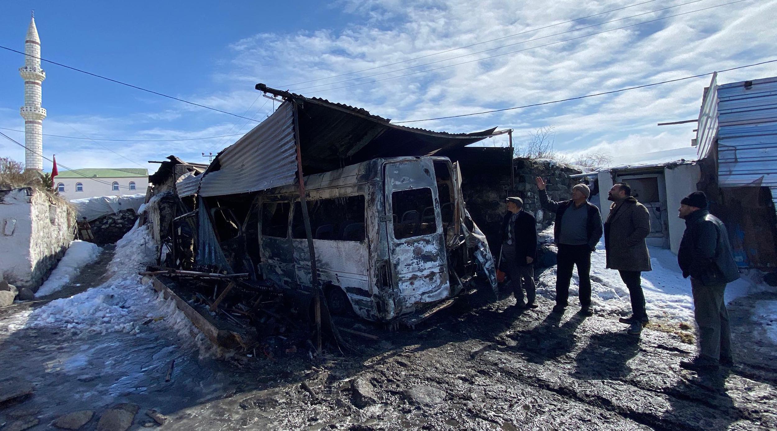 Kars’ın Arpaçay ilçesinde yolcu ve öğrenci taşımacılığı yapan Yener Şaran’a (59) ait servis minibüsü çıkan yangında kullanılamaz hale geldi.