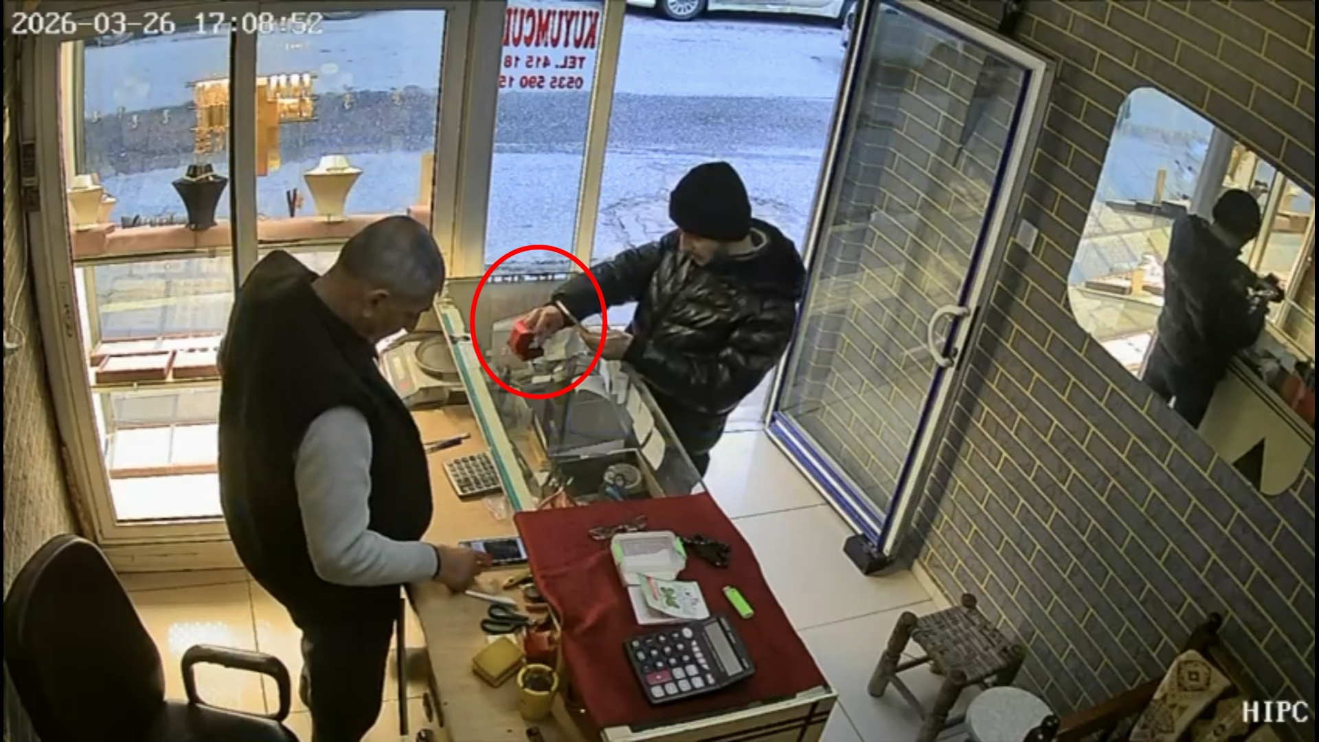 Olay, 26 Mart’ta Nusaybin ilçesi Yenituran Mahallesi Lozan Caddesi’ndeki bir kuyumcuda meydana geldi. İş yerine gelen şüpheli, altın yüzük almak istediğini söyleyerek iş yeri sahibi Süleyman Can’dan yüzüğü kutuya koymasını istedi. Şüpheli, fotoğraf çekme bahanesiyle eline aldığı yüzükle bir anda kaçtı. Güvenlik kamerasına yansıyan görüntülerde, şüphelinin iş yerine girip bir süre inceleme yaptığı ardından vitrindeki yüzüğü kutuya koydurduğu ve fotoğraf çekme bahanesiyle alarak hızla uzaklaştığı görüldü.