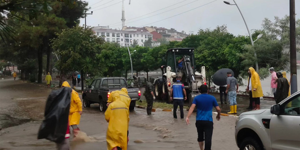 İlçede akşam saatlerinde etkili olan sağanak, günlük yaşamı olumsuz etkiledi. Sağanak nedeniyle cadde ve sokaklar suyla dolarken, bazı ev ve iş yerlerinin zemin ve bodrum katlarını su bastı, araç sürücüleri de zor anlar yaşadı. Metrekareye yaklaşık 85 kilogram yağış düşen ilçede taşkın nedeniyle şehir içi yolu trafiğe kapatılırken, belediye ekipleri yollarda suyun tahliyesi ve molozların temizlenmesi için iş makineleriyle çalışma başlattı.