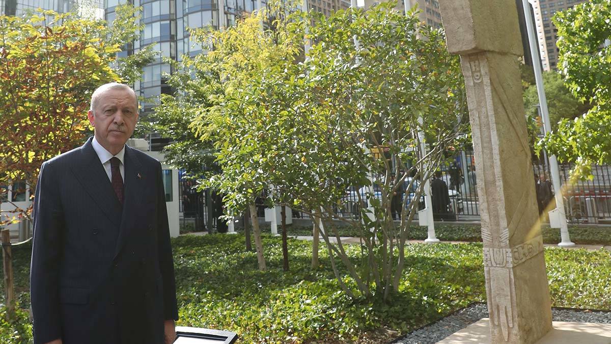 Cumhurbaşkanı Erdoğan, BM bahçesinde sergilenen Göbeklitepe’deki dikilitaşın replikasını ziyaret etti