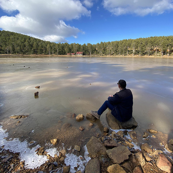 Güzel görüntülerin oluştuğu göl, havadan dron ile görüntülendi. Aydın’dan günübirlik gezi için Gökçeova Göleti’ne gelen Aziz Özden, Ediz Verdioğlu ve İsmail Kadak bol bol fotoğraf çektirdi. Aziz Özden, “Buraya ikinci gelişim. Daha önce buz tuttuğunu görmemiştim ama şaşırmadık. Birkaç hafta sonra buralar karla kaplanacaktır ve ulaşım zor olacaktır. Kar yağmadığında araçla kolaylıkla buraya gelinebilir” dedi.