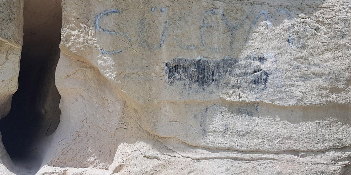 Gomeda’da 8 kilometre yürüyen Adanalı doğa tutkunları, Mustafapaşa (Sinasos) köyünde mola verdi. Burada, vadideki oyma tarihi yapılara sprey boyayla aşk mesajlarından onlarca kadın ve erkek isimlerinin yazıldığı görüldü. Tarihi mekanı görenler bu duruma tepki gösterdi. Bölgede hafta sonu gezi yapan Adanalı doğa tutkunları, “Ülke turizminin önemli merkezi olan Kapadokya’da bu tür bir saygısızlık yapılması kötü örnek oluyor. Yazıların bir an önce temizlenmesi gerek” ifadelerini kullandı.