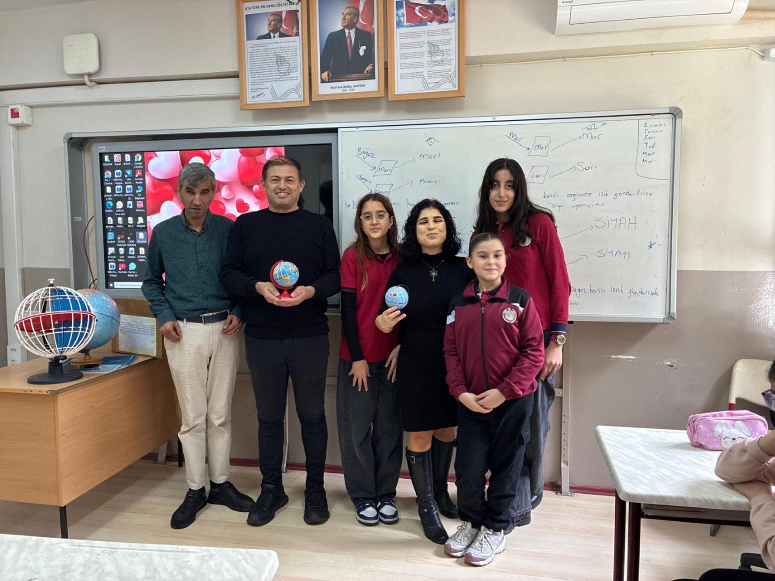 Kitapçıoğlu ve öğrencileri, hazırladıkları kabartmalı dünya kürelerini, 'Dünya artık parmaklarının ucunda' projesi kapsamında görme engelliler okullarına hediye ederek eğitimde fırsat eşitliği mesajı verdi.